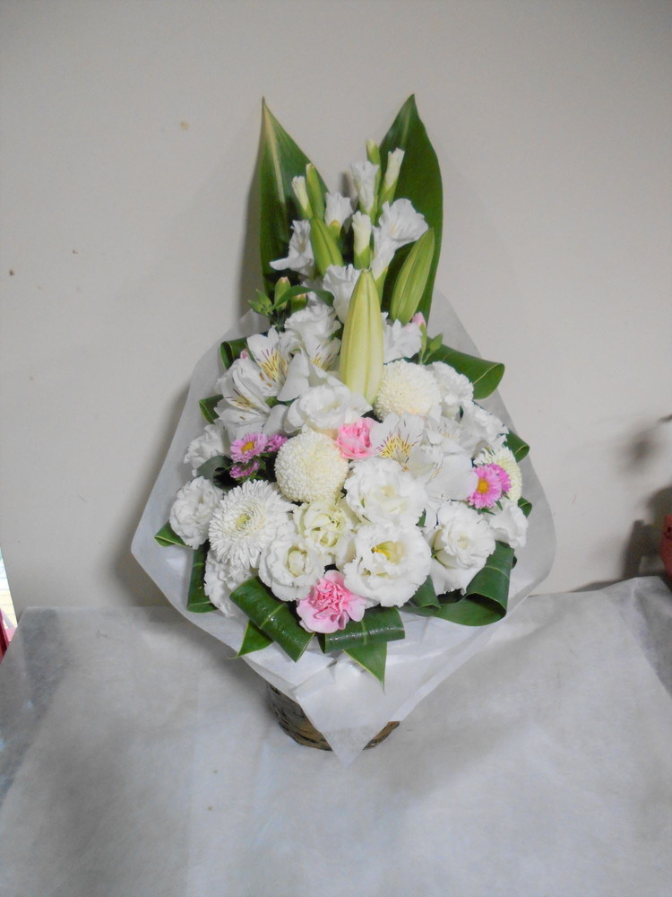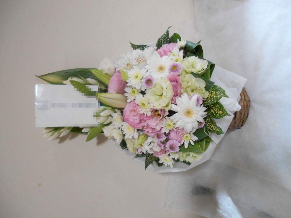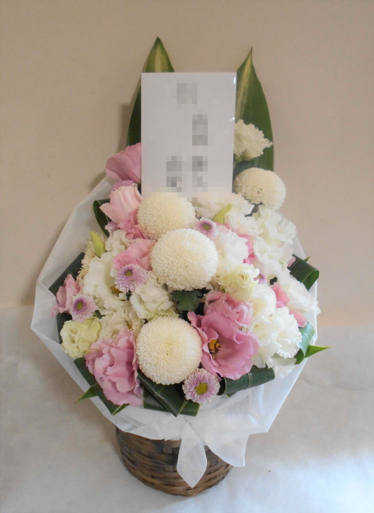 お悔やみ お供えの花 供花 (ホワイト&ピンクでまとめたバスケットアレンジ)