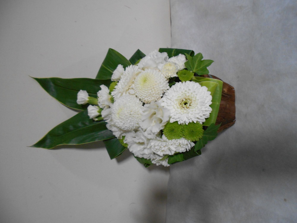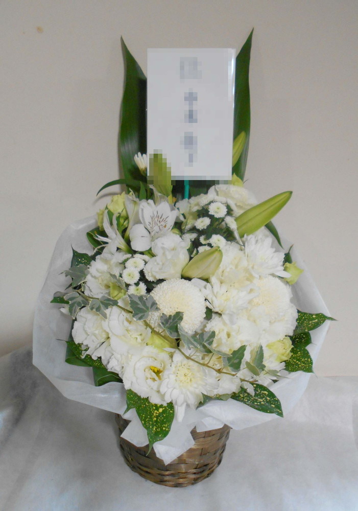 お悔やみ お供えの花 供花 (ホワイト&グリーンでまとめたバスケットアレンジ)