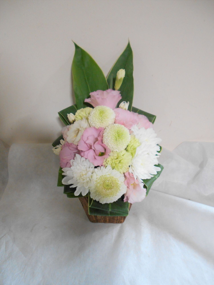 お悔やみ お供えの花 供花 (淡いピンク系のお花でまとめたバスケットアレンジ)
