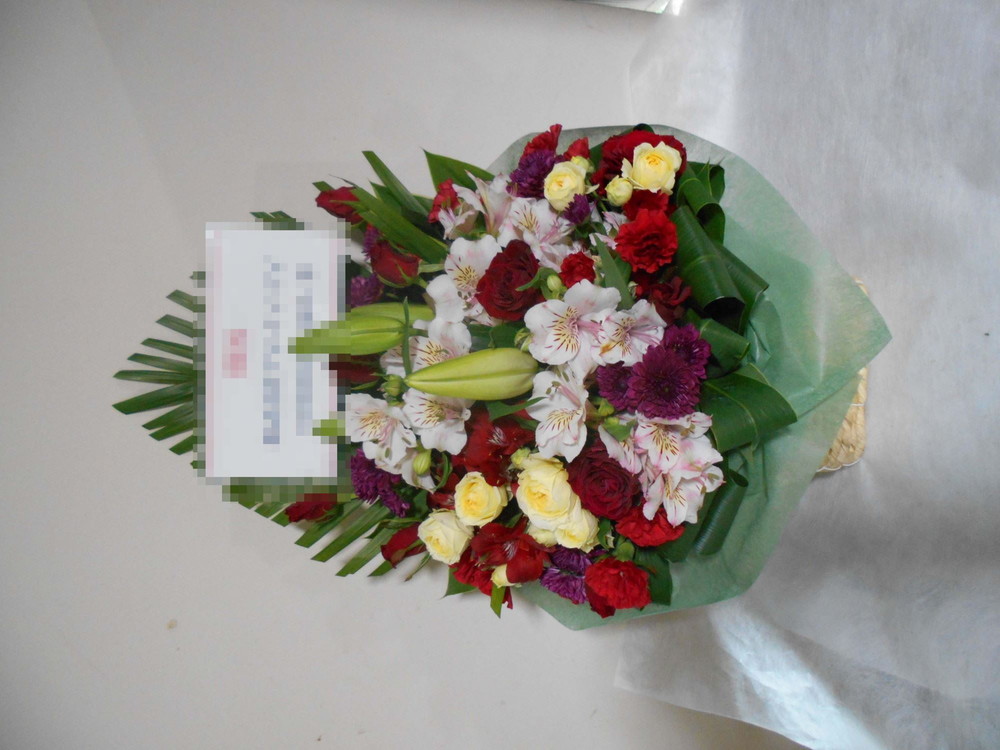 アレンジメントの実際にお届けした写真です。花秘書では発送前に写真をメールで送信致しますので安心して大切な顧客や取引様へのギフトにご利用頂けます。