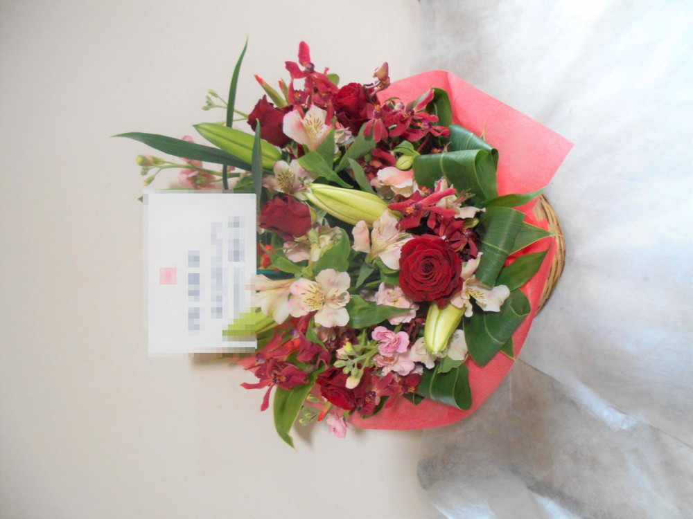 華寿・還暦(60歳)のお祝い赤色のお花メインのアレンジメント10000