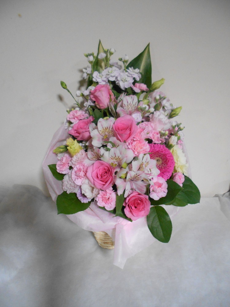 上寿・百寿(100歳)のお祝い桃色のお花メインのアレンジメント10000