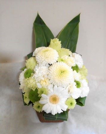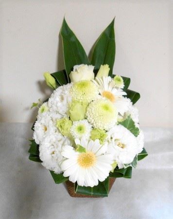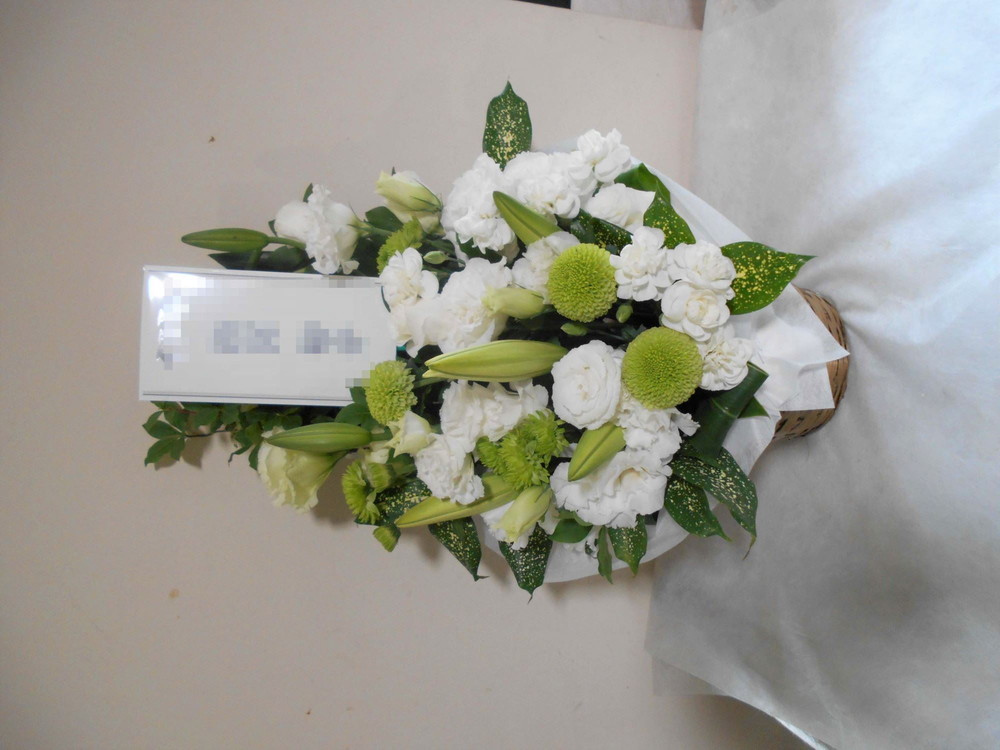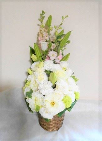 お悔やみ お供えの花 供花 (ホワイト&グリーンでまとめたバスケットアレンジ)