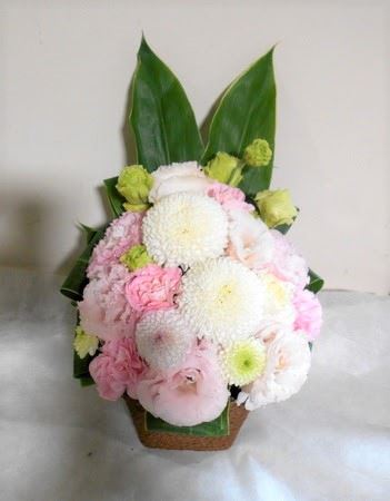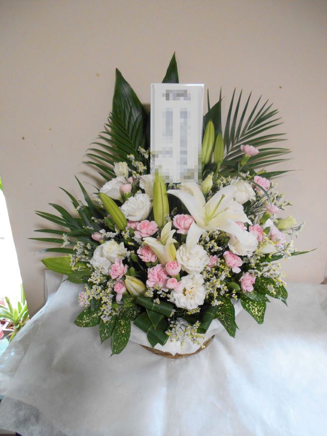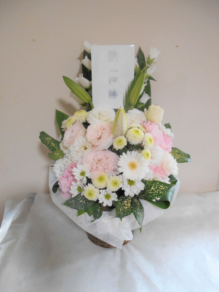 お悔やみ お供えの花 供花 (ホワイト&ピンクでまとめたバスケットアレンジ)