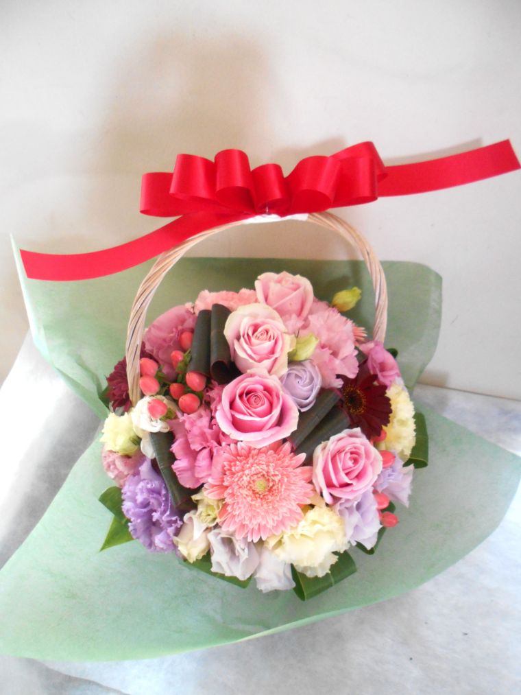 生花(バスケット)サイズ 約[H:26(取手H約31)×W:26(cm)]