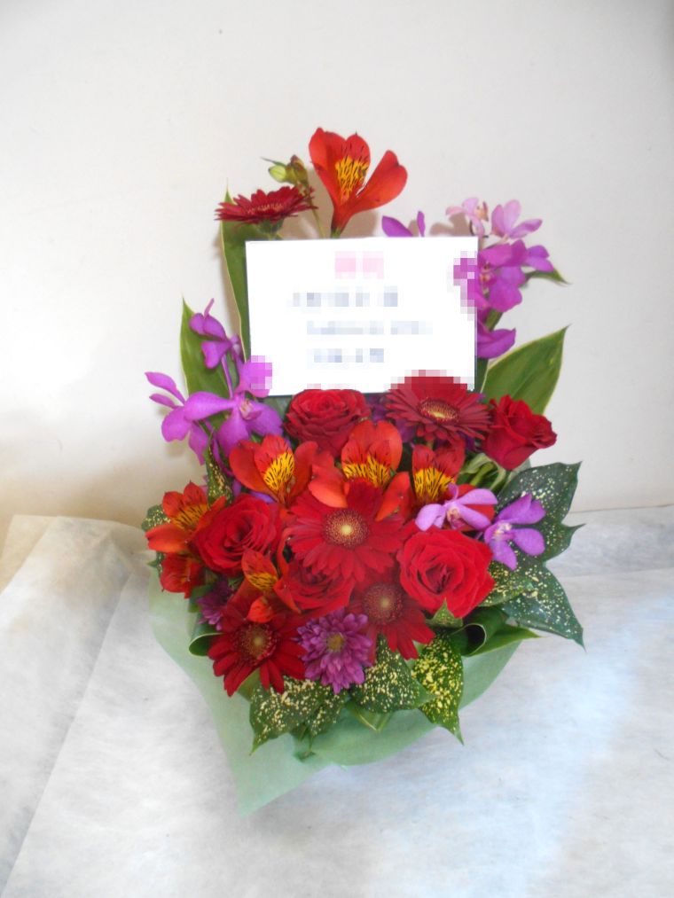 アレンジメントの実際にお届けした写真です。花秘書では発送前に写真をメールで送信致しますので安心して大切な顧客や取引様へのギフトにご利用頂けます。