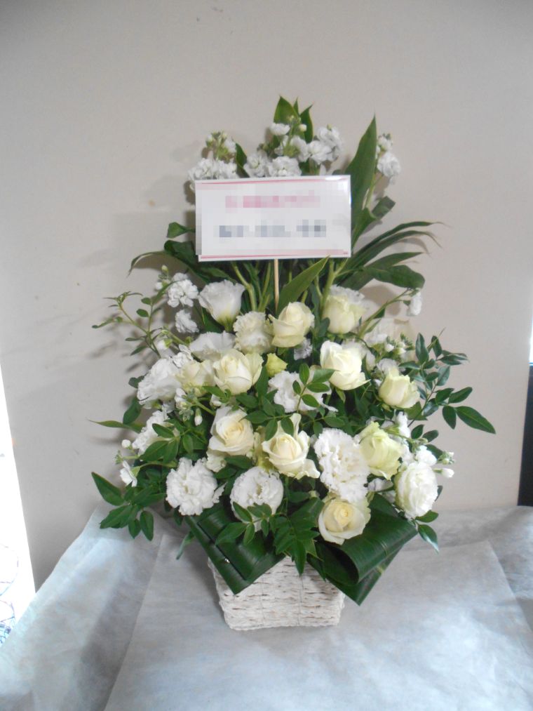 白寿(99歳)のお祝い白色のお花メインのアレンジメント30000