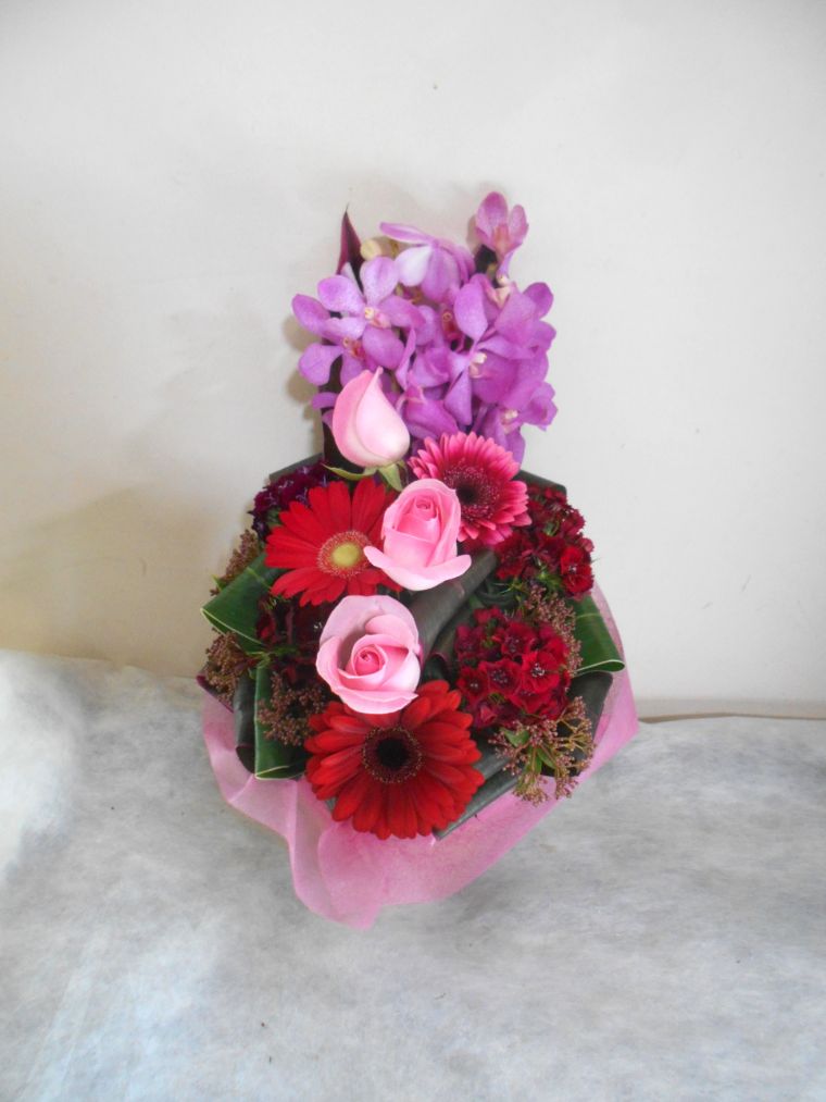 この写真は、実際にお届けさせていただいたアレンジメントです