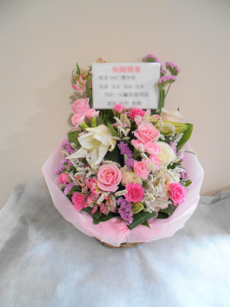 この写真は、実際にお届けさせていただいたアレンジメントです
