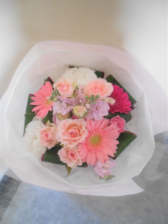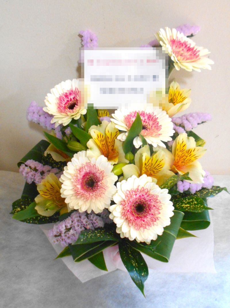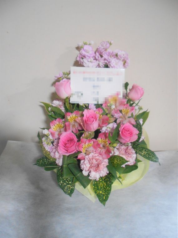 この写真は、実際にお届けさせていただいたアレンジメントです