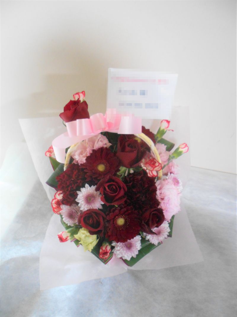 華寿・還暦(60歳)のお祝い赤色のお花メインのアレンジメント5000