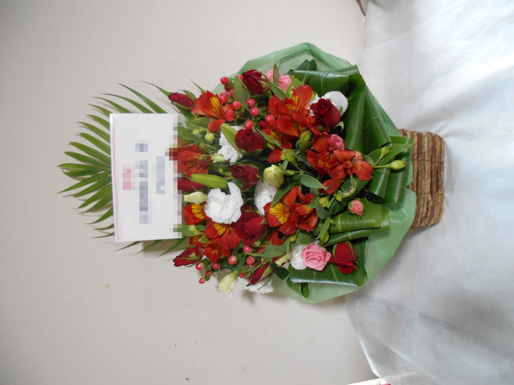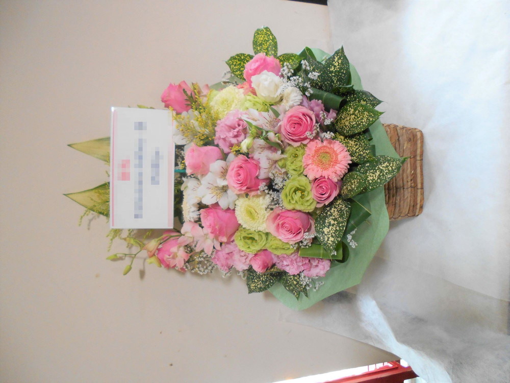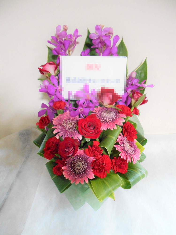 アレンジメントの実際にお届けした写真です。花秘書では発送前に写真をメールで送信致しますので安心して大切な顧客や取引様へのギフトにご利用頂けます。