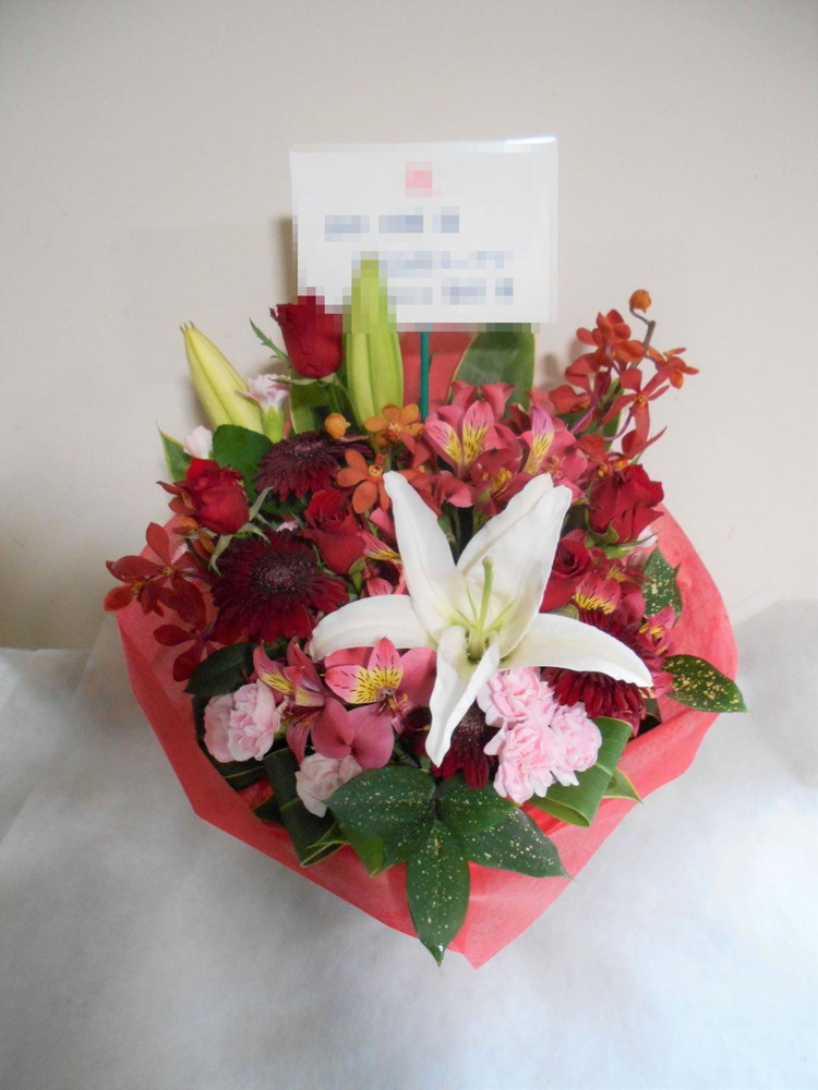 華寿・還暦(60歳)のお祝い赤色のお花メインのアレンジメント10000