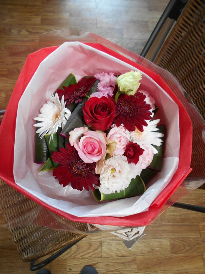 この写真は、実際にお届けさせていただいたアレンジメントです