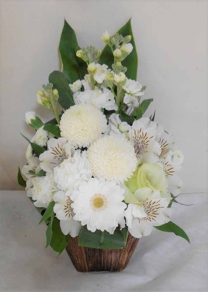 お悔やみ お供えの花 供花 (ホワイト&グリーンでまとめたバスケットアレンジ)
