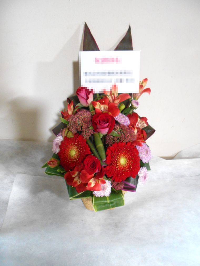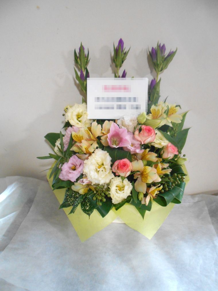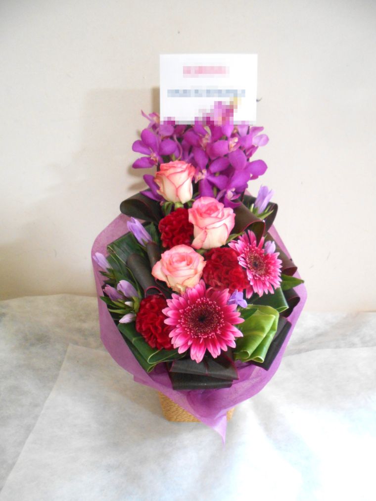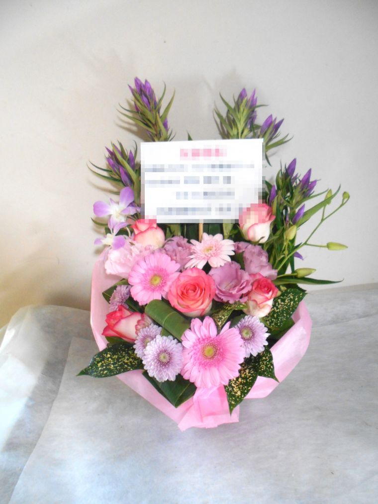 アレンジメントの実際にお届けした写真です。花秘書では発送前に写真をメールで送信致しますので安心して大切な顧客や取引様へのギフトにご利用頂けます。