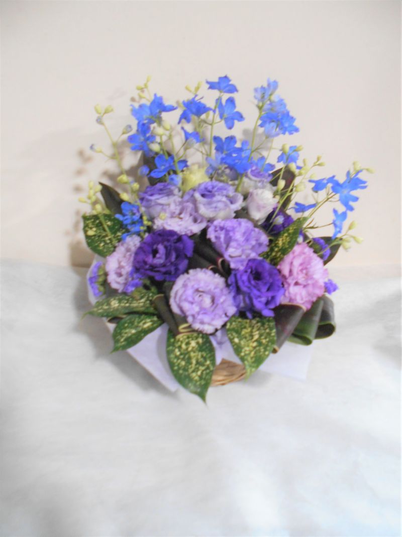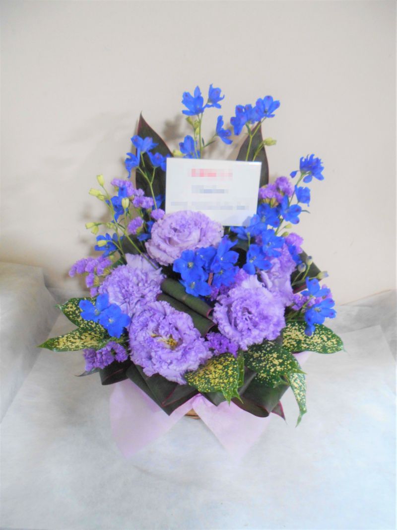 【青系】古希(70歳)のお祝い紫色のお花メインのアレンジメント5000