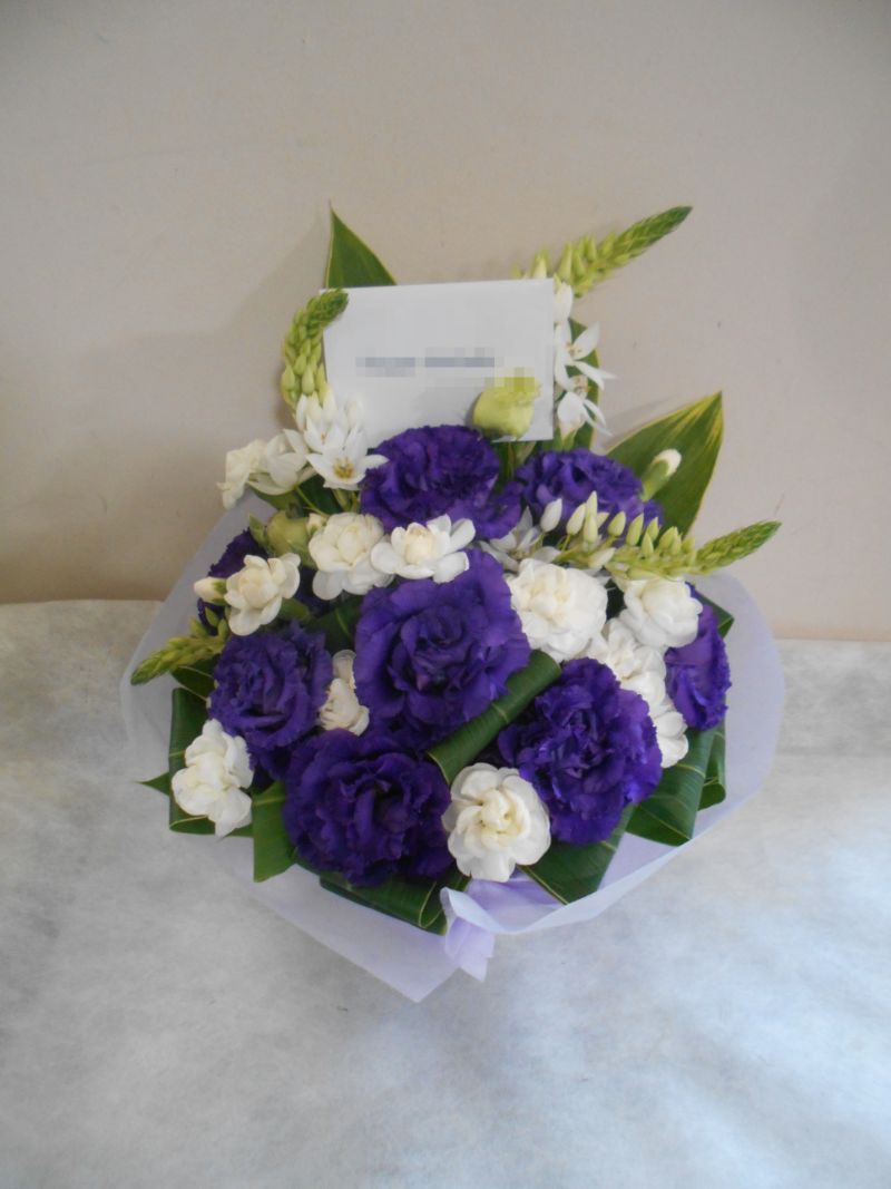 【青系】卒寿(90歳)のお祝い紫色のお花メインのアレンジメント5000