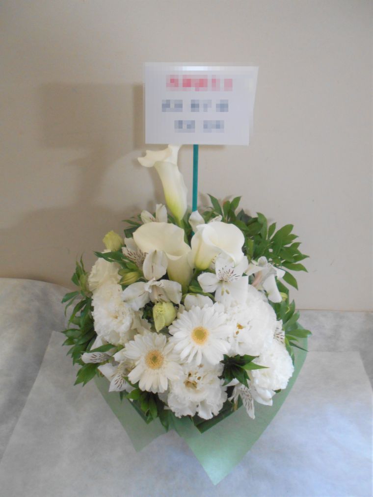 白寿(99歳)のお祝い白色のお花メインのアレンジメント5000