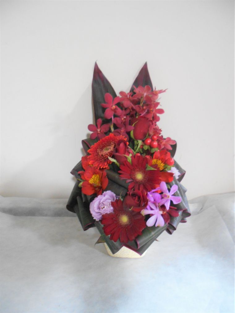 華寿・還暦(60歳)のお祝い赤色のお花メインのアレンジメント10000