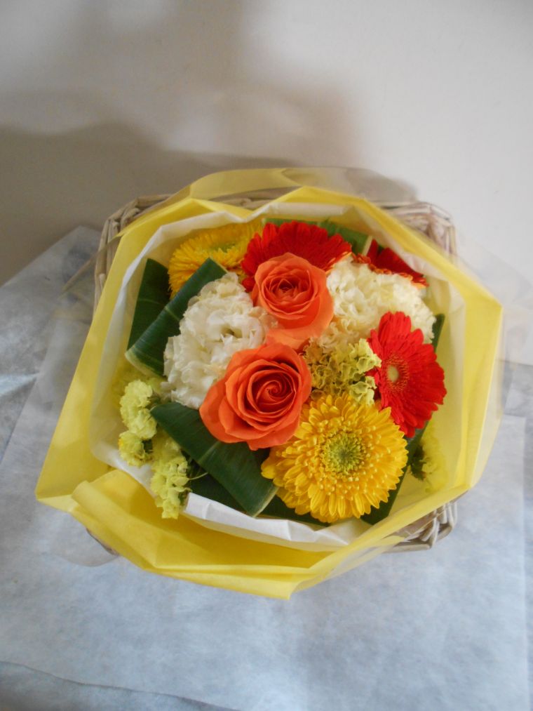 この写真は、実際にお届けさせていただいたアレンジメントです