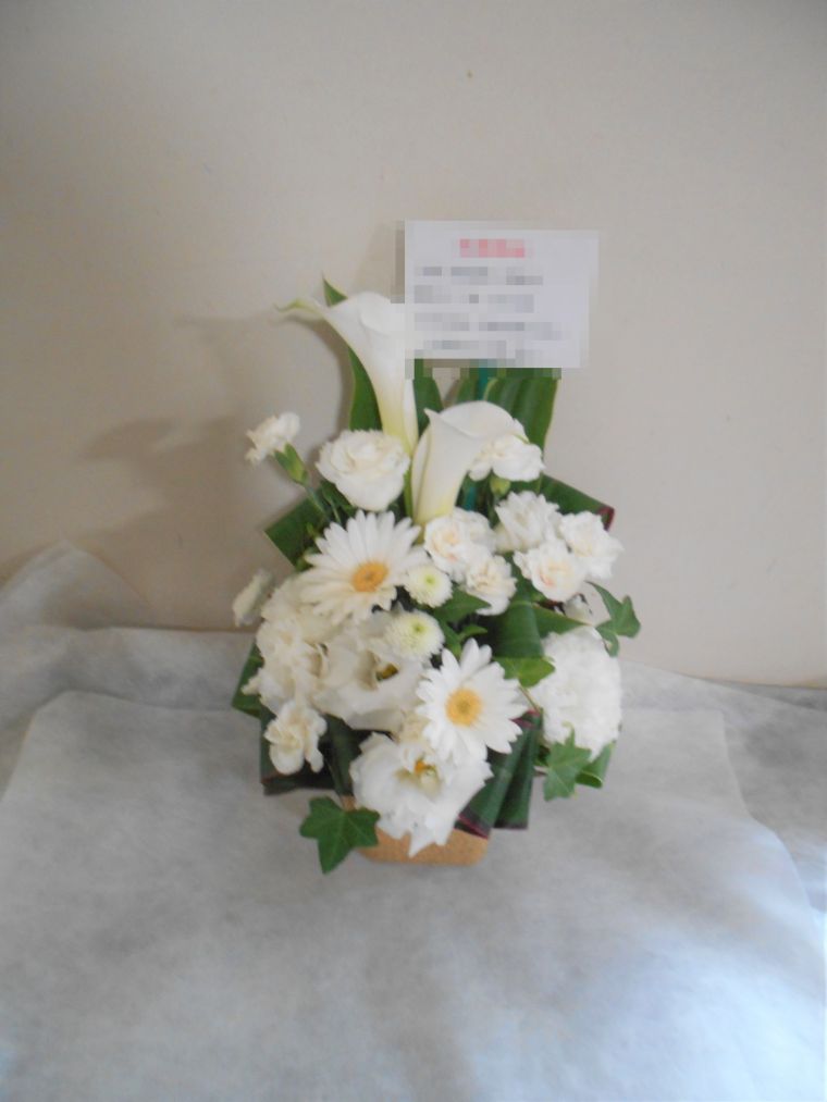 白寿(99歳)のお祝い白色のお花メインのアレンジメント5000