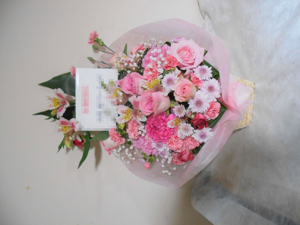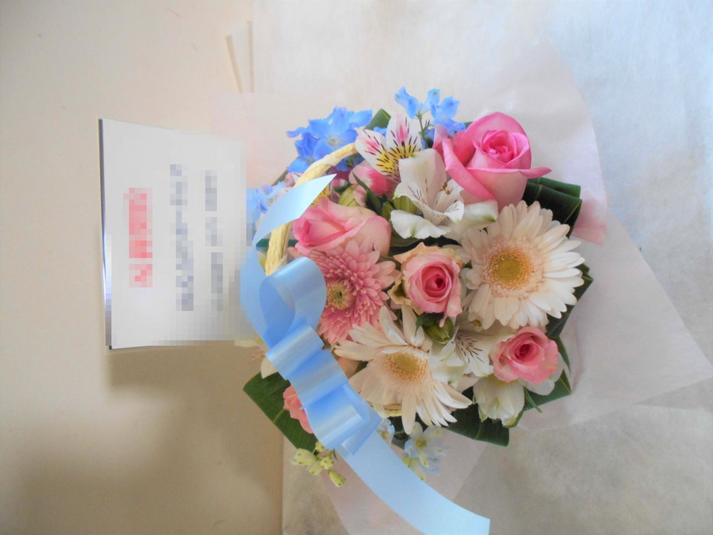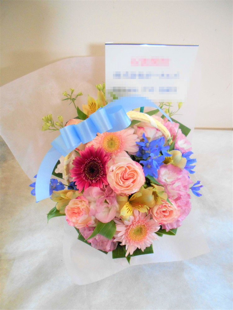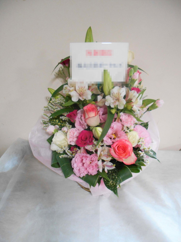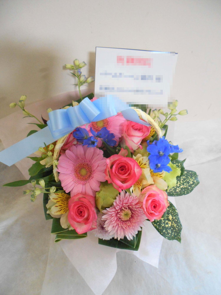 アレンジメントの実際にお届けした写真です。花秘書では発送前に写真をメールで送信致しますので安心して大切な顧客や取引様へのギフトにご利用頂けます。