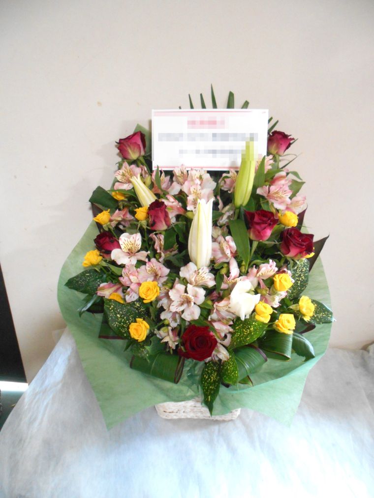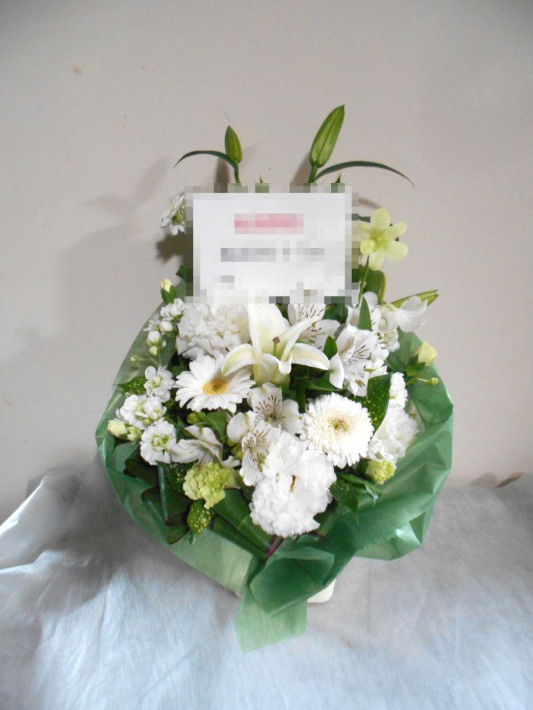 アレンジメントの実際にお届けした写真です。花秘書では発送前に写真をメールで送信致しますので安心して大切な顧客や取引様へのギフトにご利用頂けます。