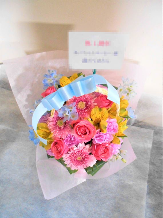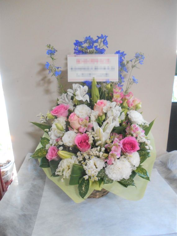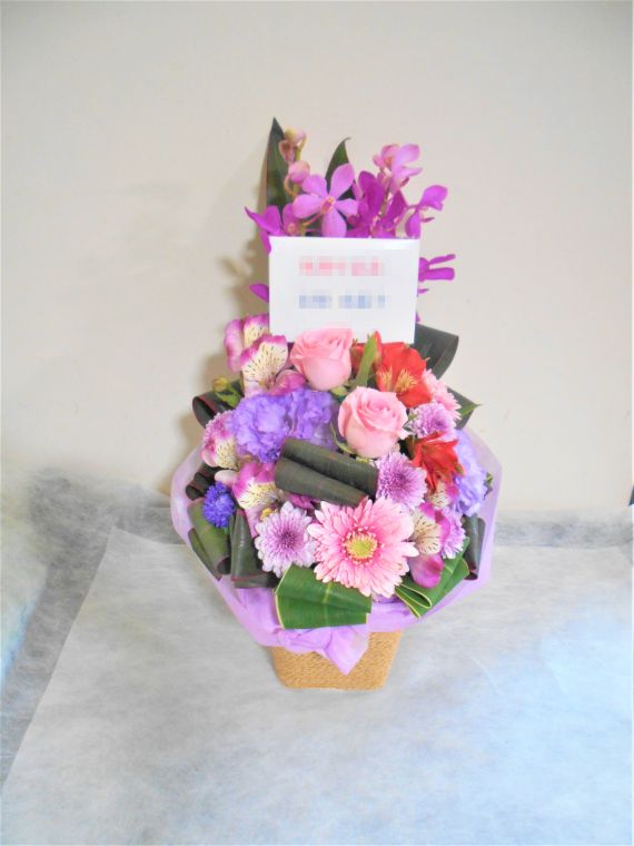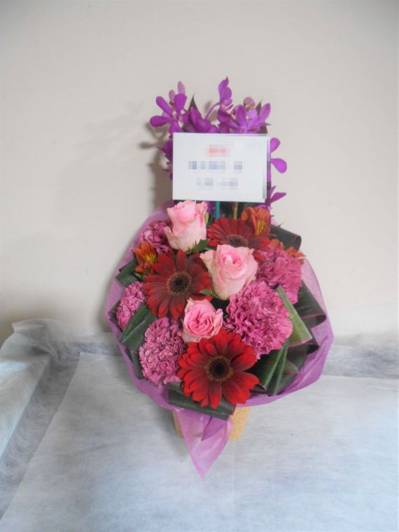 この写真は、実際にお届けさせていただいたアレンジメントです