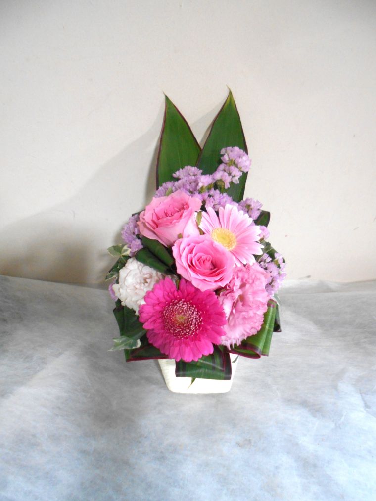 この写真は、実際にお届けさせていただいたアレンジメントです