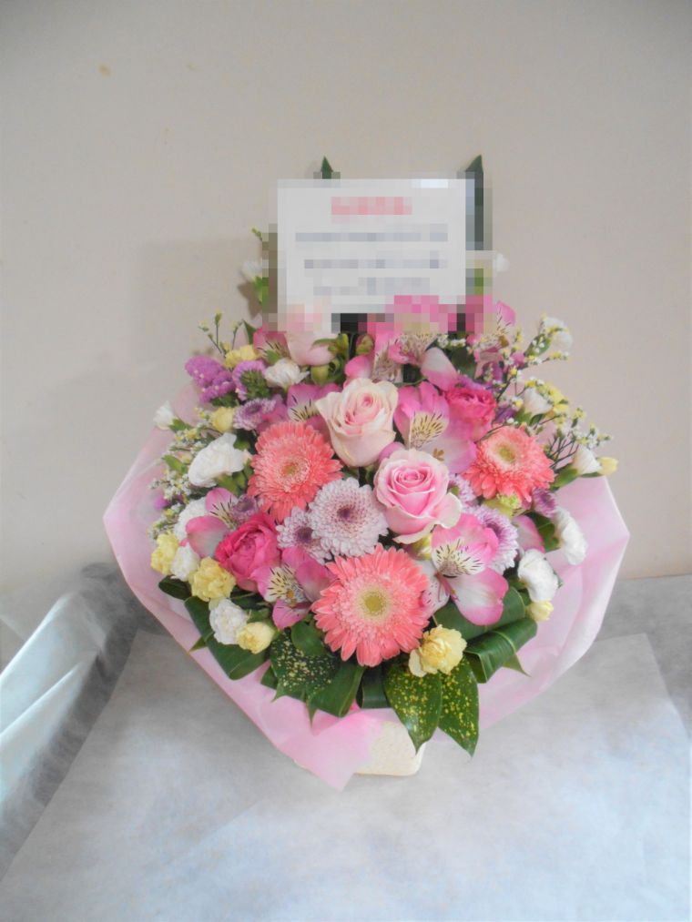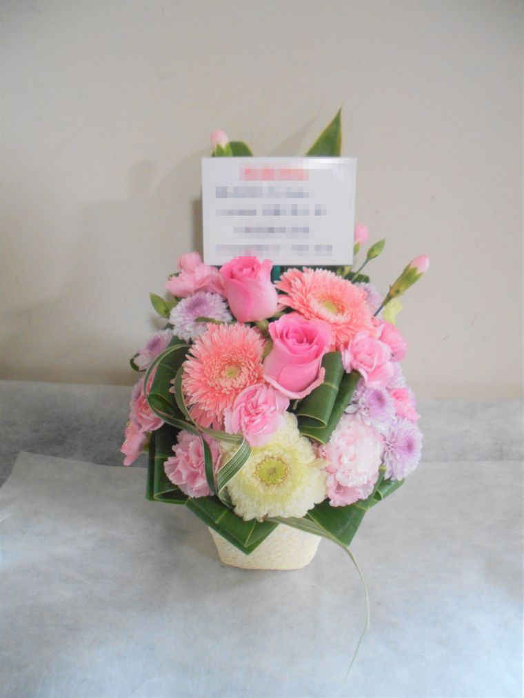 アレンジメントの実際にお届けした写真です。花秘書では発送前に写真をメールで送信致しますので安心して大切な顧客や取引様へのギフトにご利用頂けます。