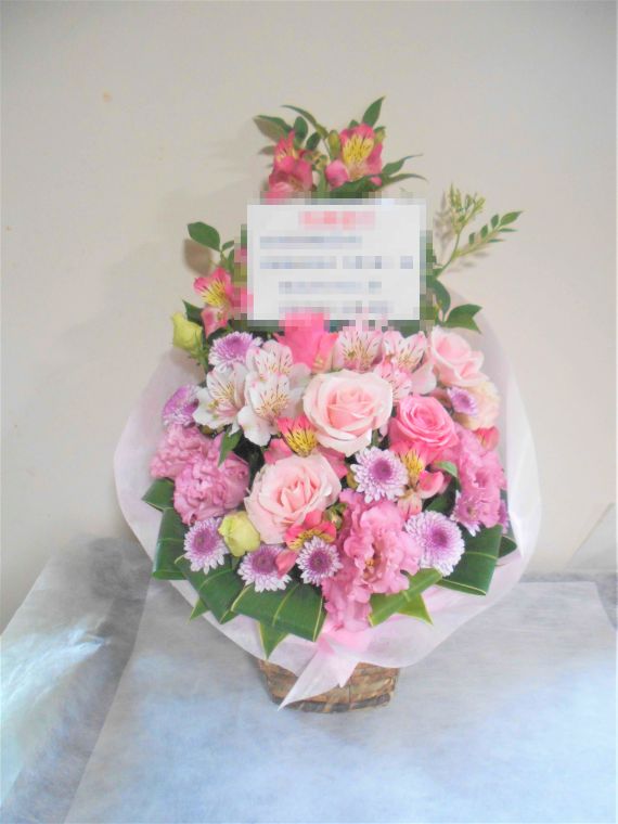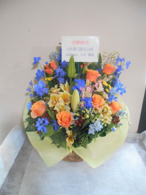 この写真は、実際にお届けさせていただいたアレンジメントです