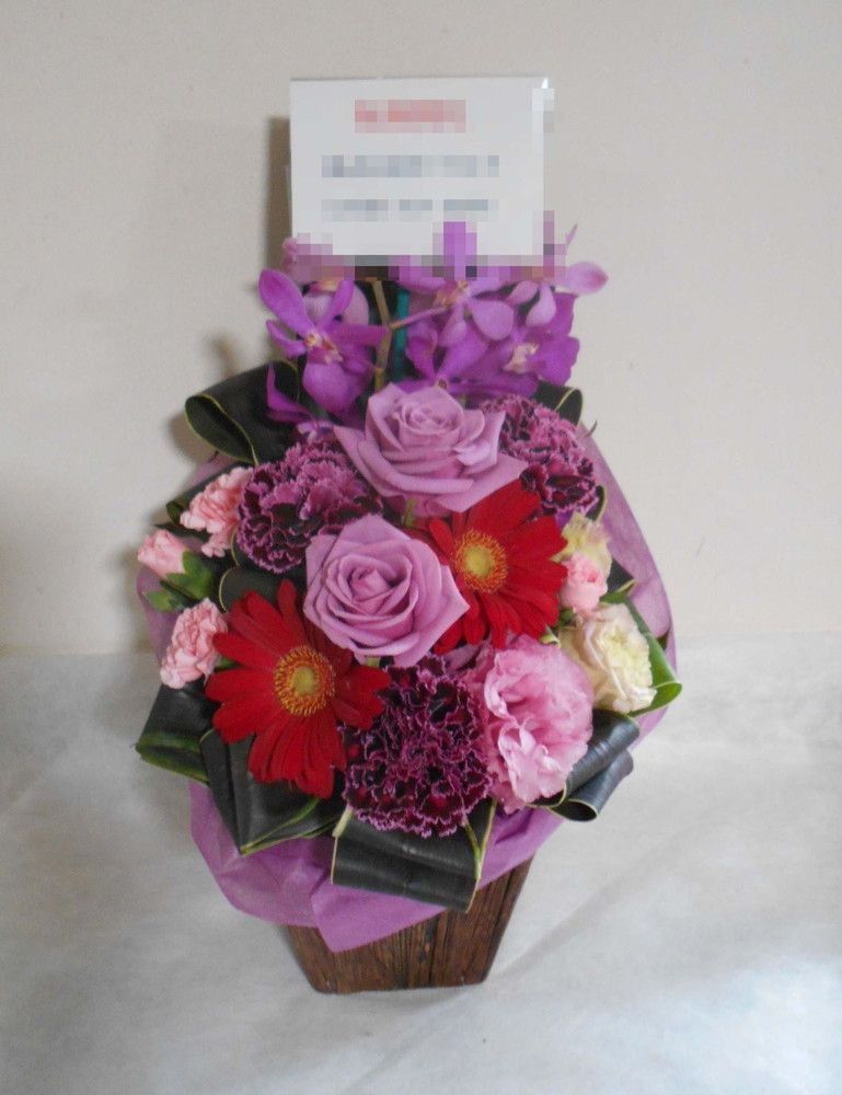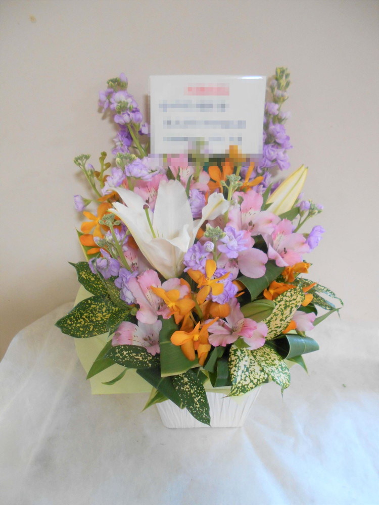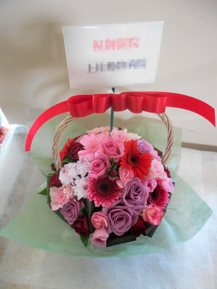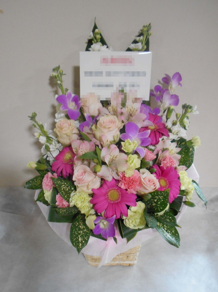 アレンジメントの実際にお届けした写真です。花秘書では発送前に写真をメールで送信致しますので安心して大切な顧客や取引様へのギフトにご利用頂けます。
