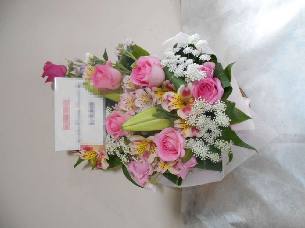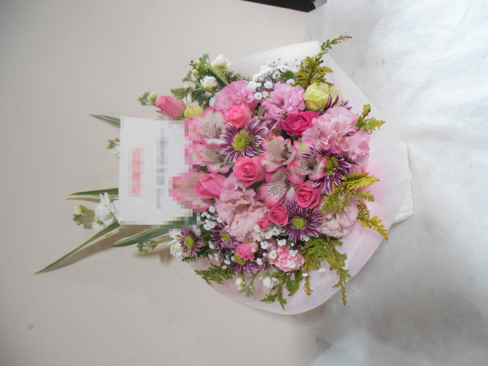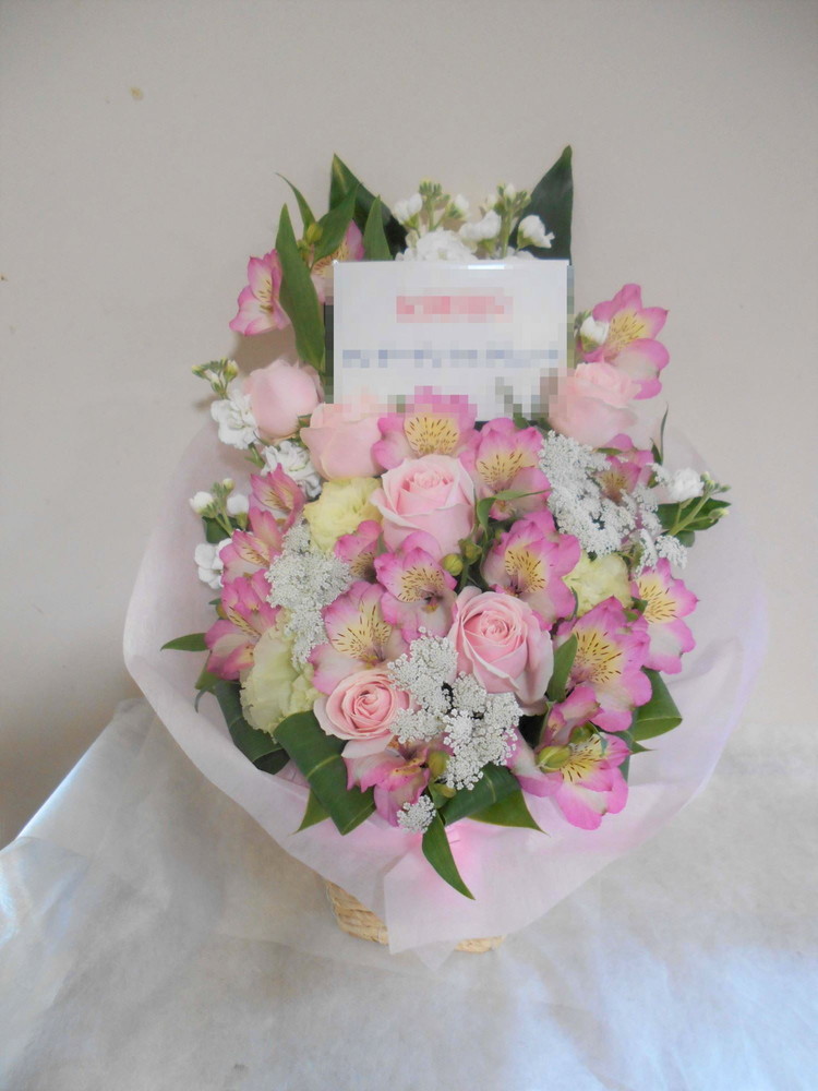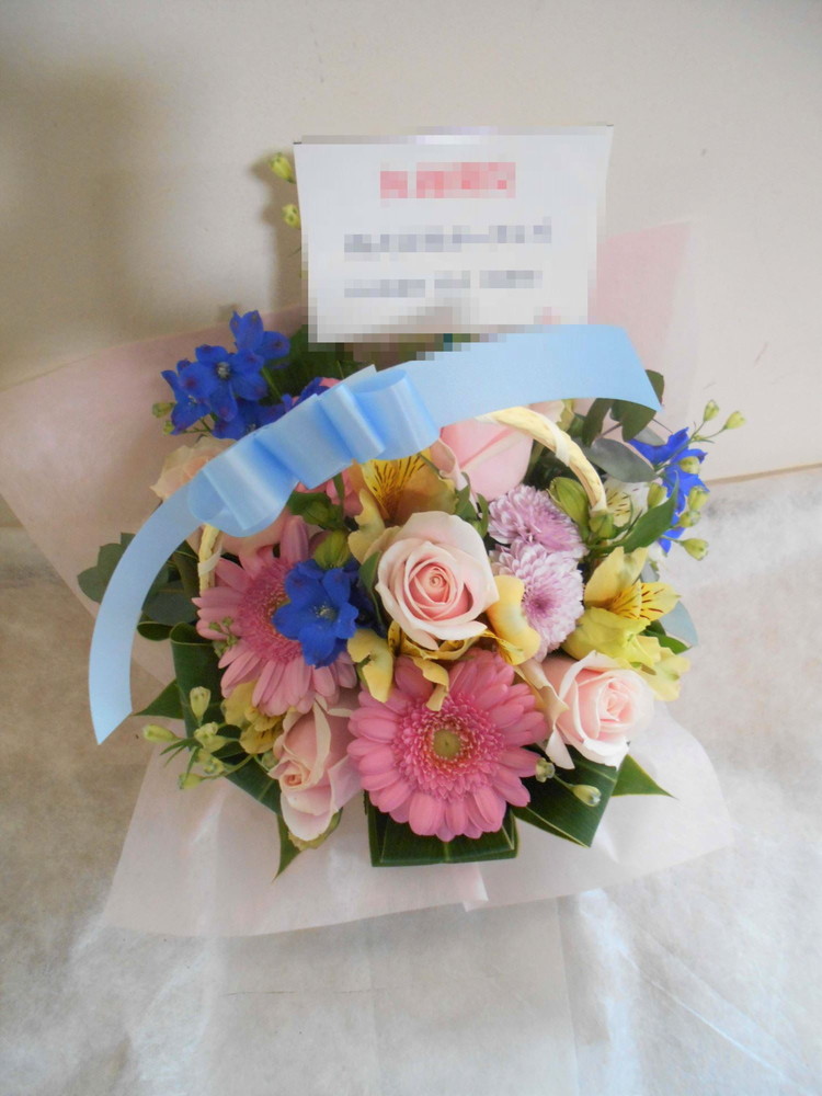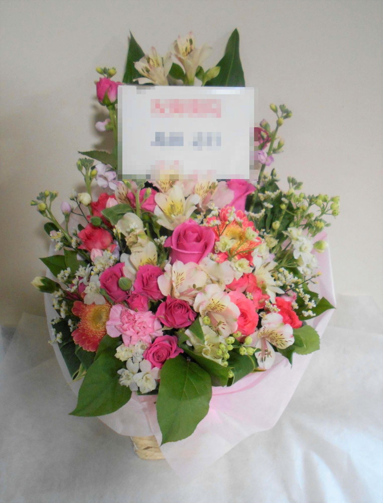 アレンジメントの実際にお届けした写真です。花秘書では発送前に写真をメールで送信致しますので安心して大切な顧客や取引様へのギフトにご利用頂けます。