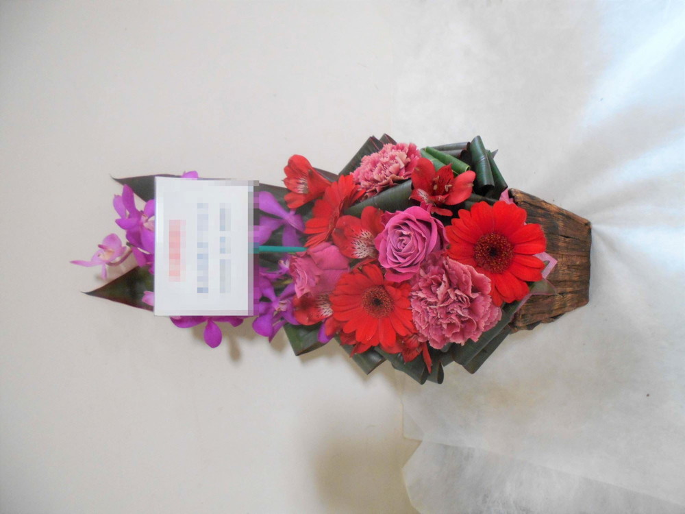 この写真は、実際にお届けさせていただいたアレンジメントです