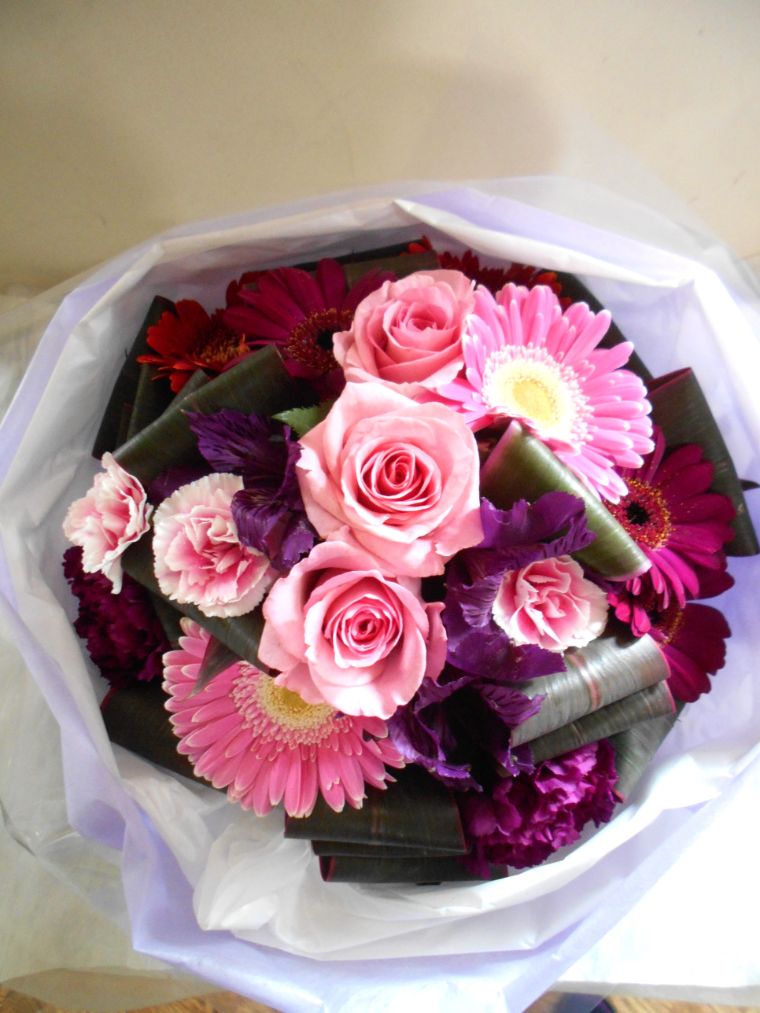 この写真は、実際にお届けさせていただいたアレンジメントです