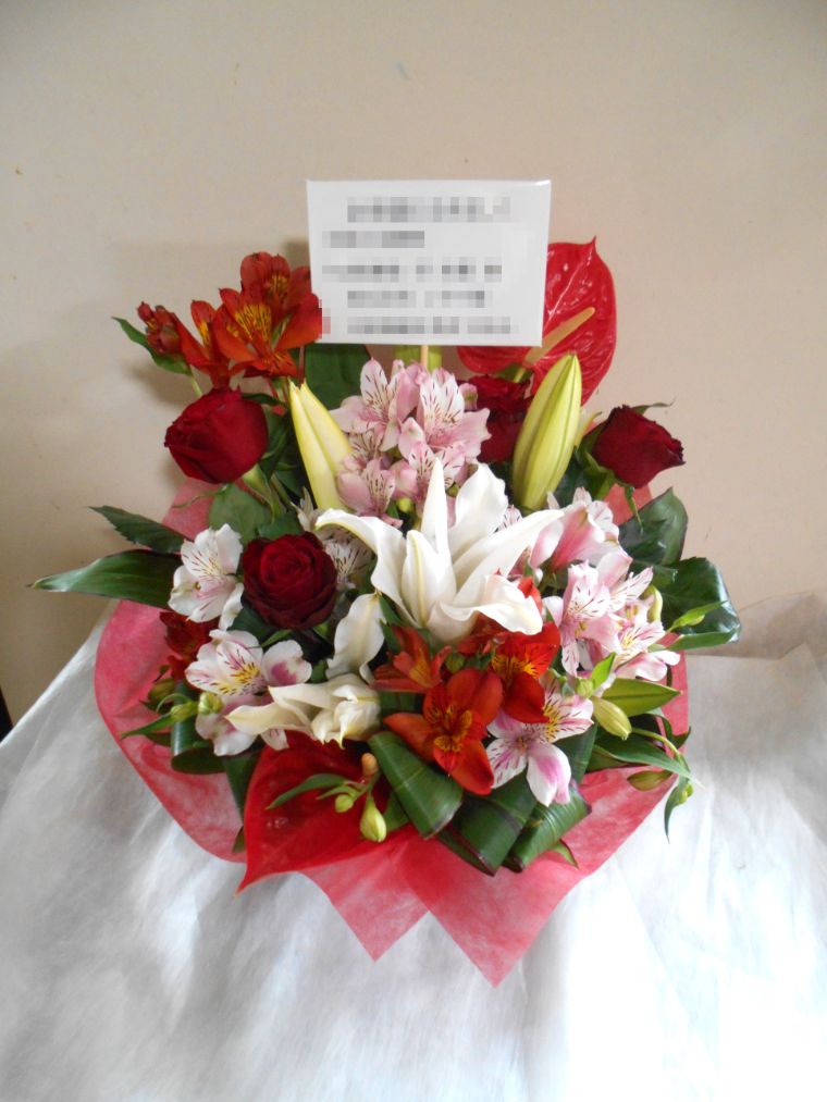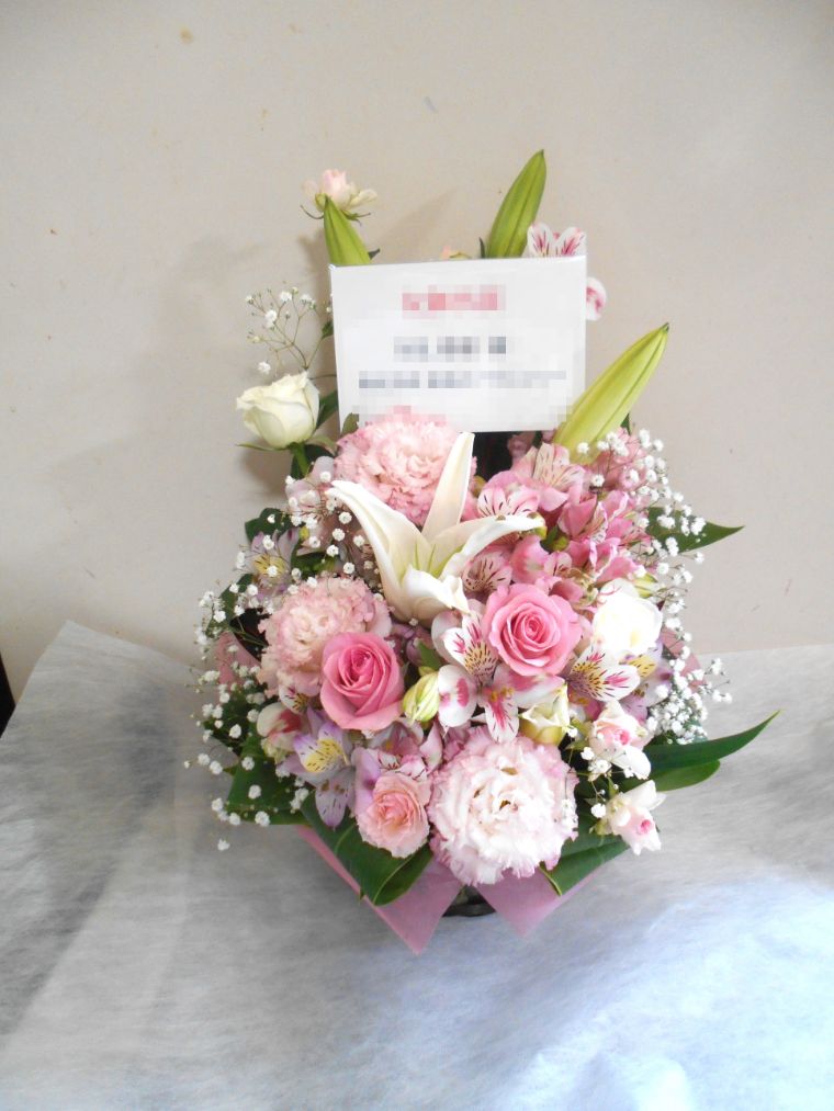 アレンジメントの実際にお届けした写真です。花秘書では発送前に写真をメールで送信致しますので安心して大切な顧客や取引様へのギフトにご利用頂けます。