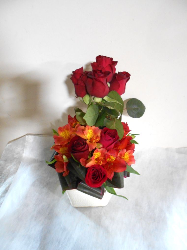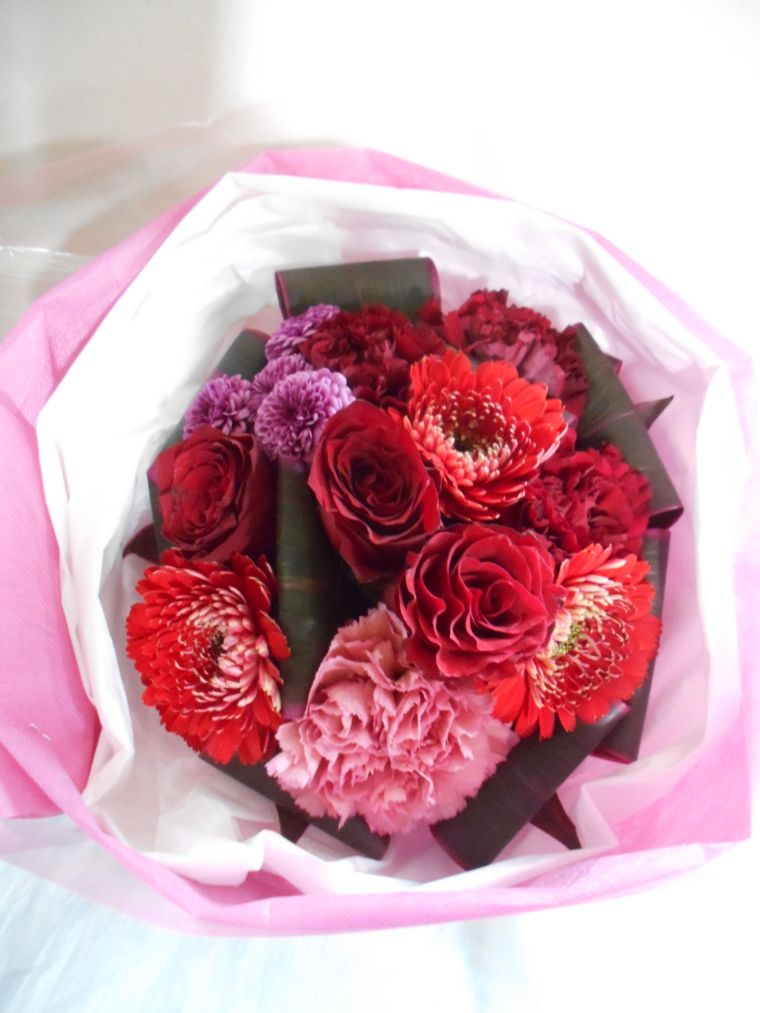 この写真は、実際にお届けさせていただいたアレンジメントです
