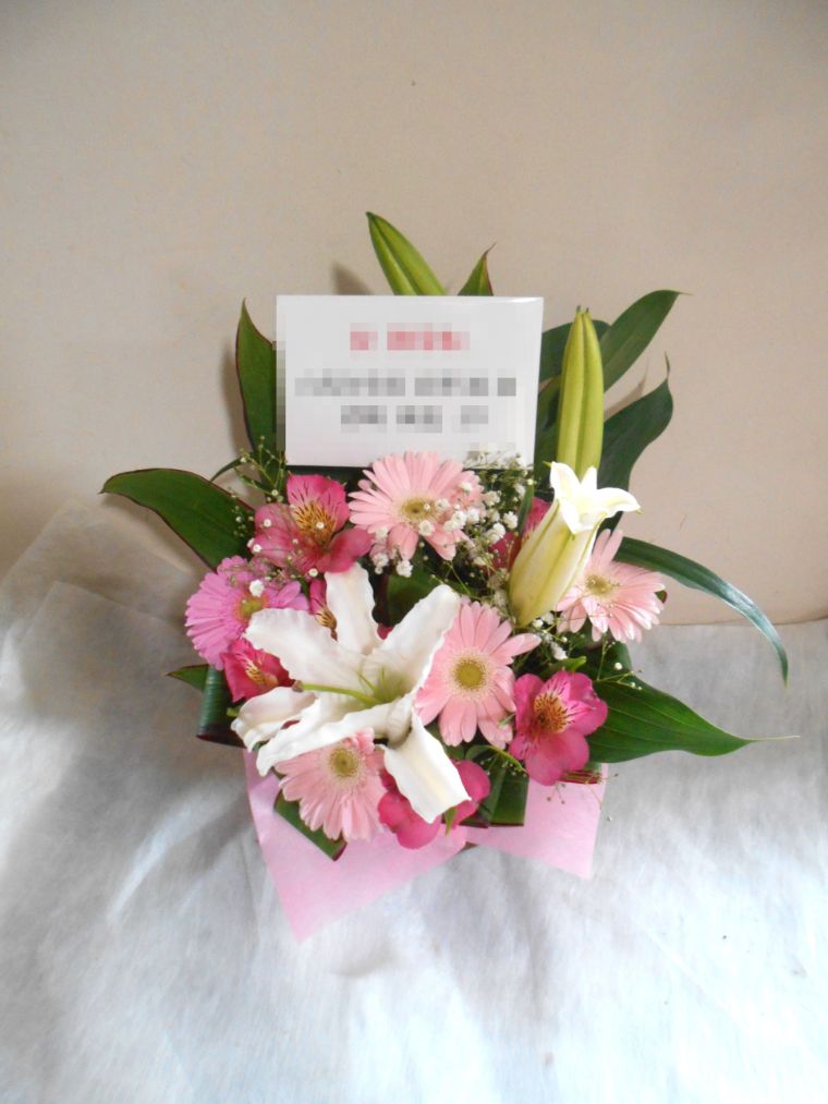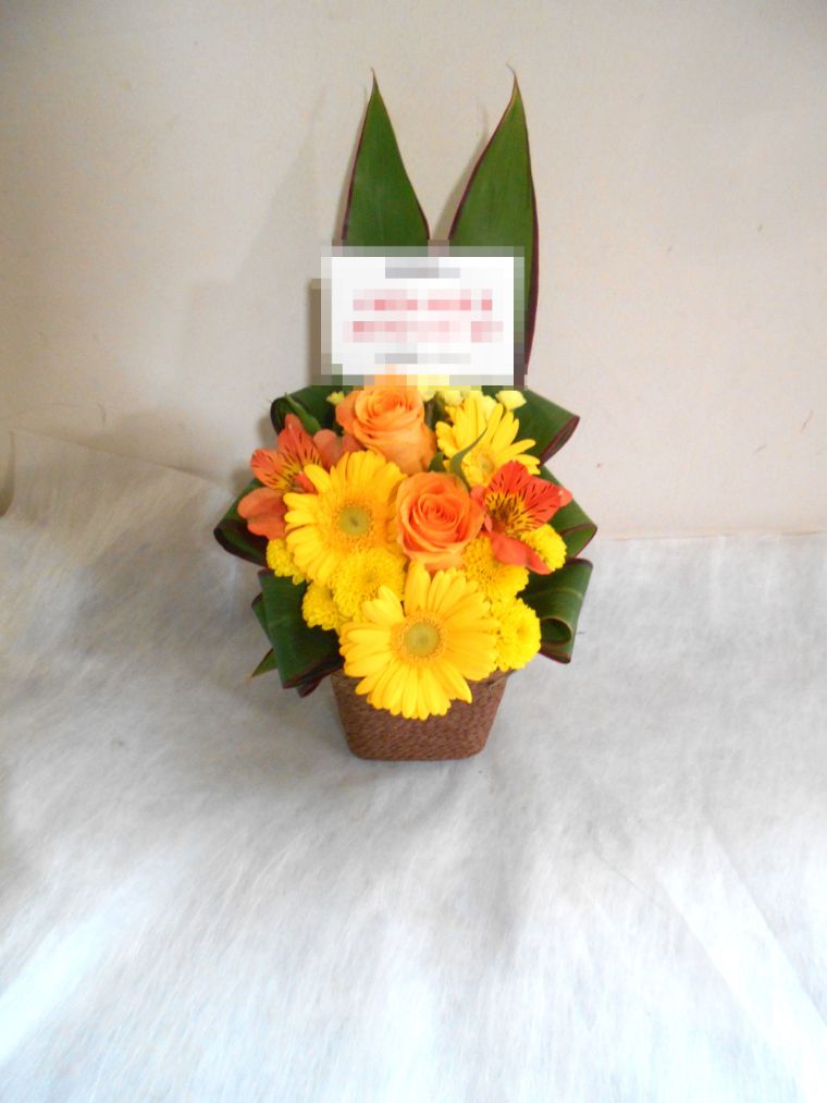 アレンジメントの実際にお届けした写真です。花秘書では発送前に写真をメールで送信致しますので安心して大切な顧客や取引様へのギフトにご利用頂けます。