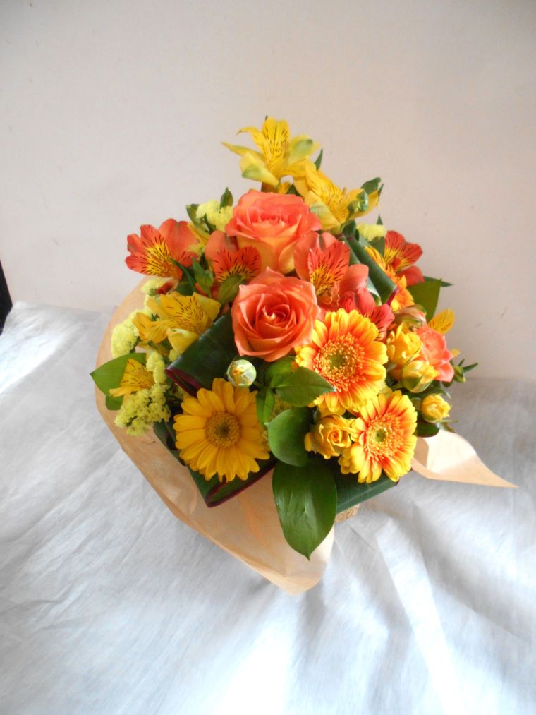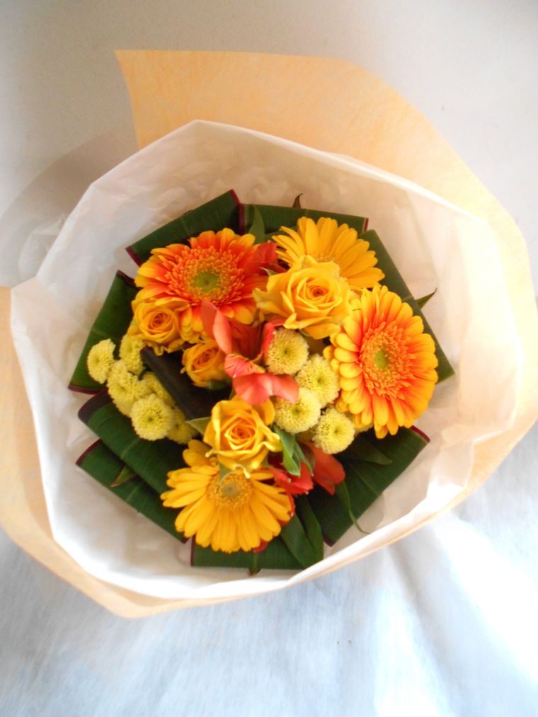 鮮やかな黄色オレンジ系のブーケ(花束)