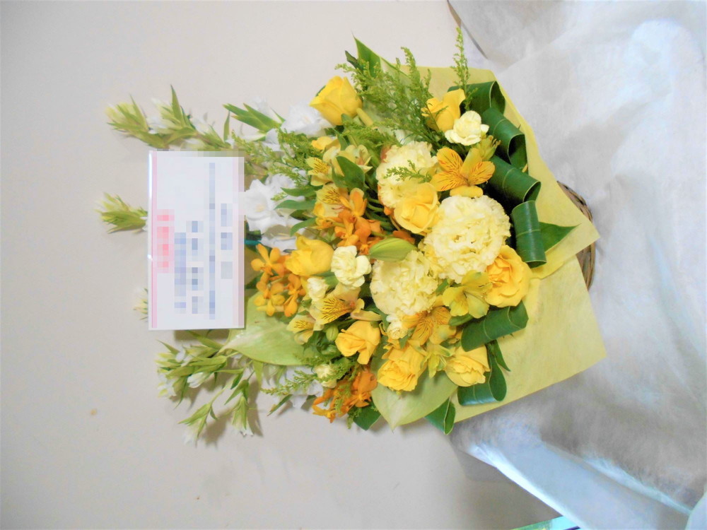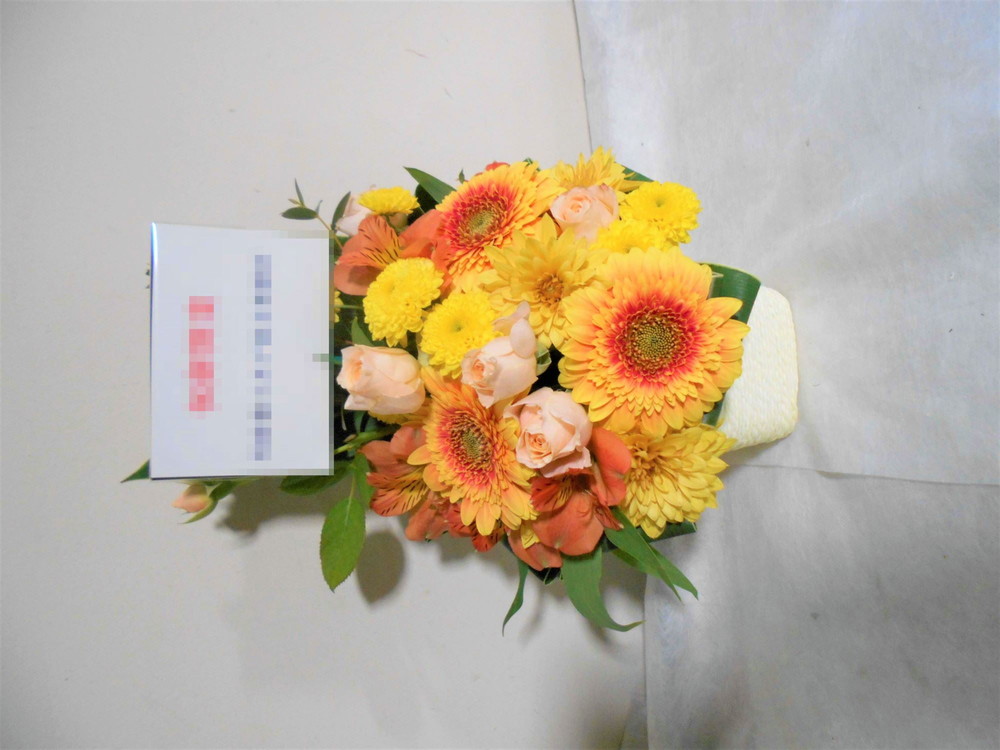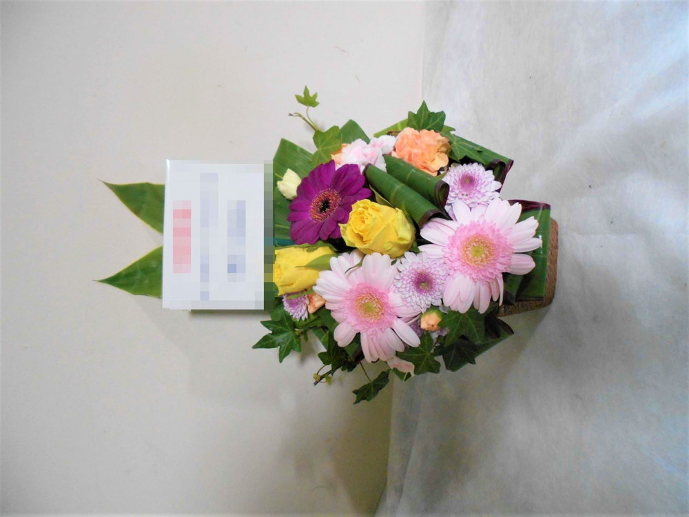 アレンジメントの実際にお届けした写真です。花秘書では発送前に写真をメールで送信致しますので安心して大切な顧客や取引様へのギフトにご利用頂けます。