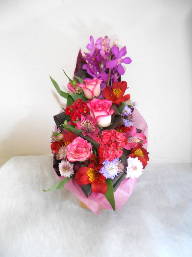 この写真は、実際にお届けさせていただいたアレンジメントです