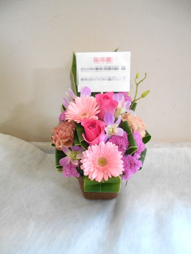 アレンジメントの実際にお届けした写真です。花秘書では発送前に写真をメールで送信致しますので安心して大切な顧客や取引様へのギフトにご利用頂けます。