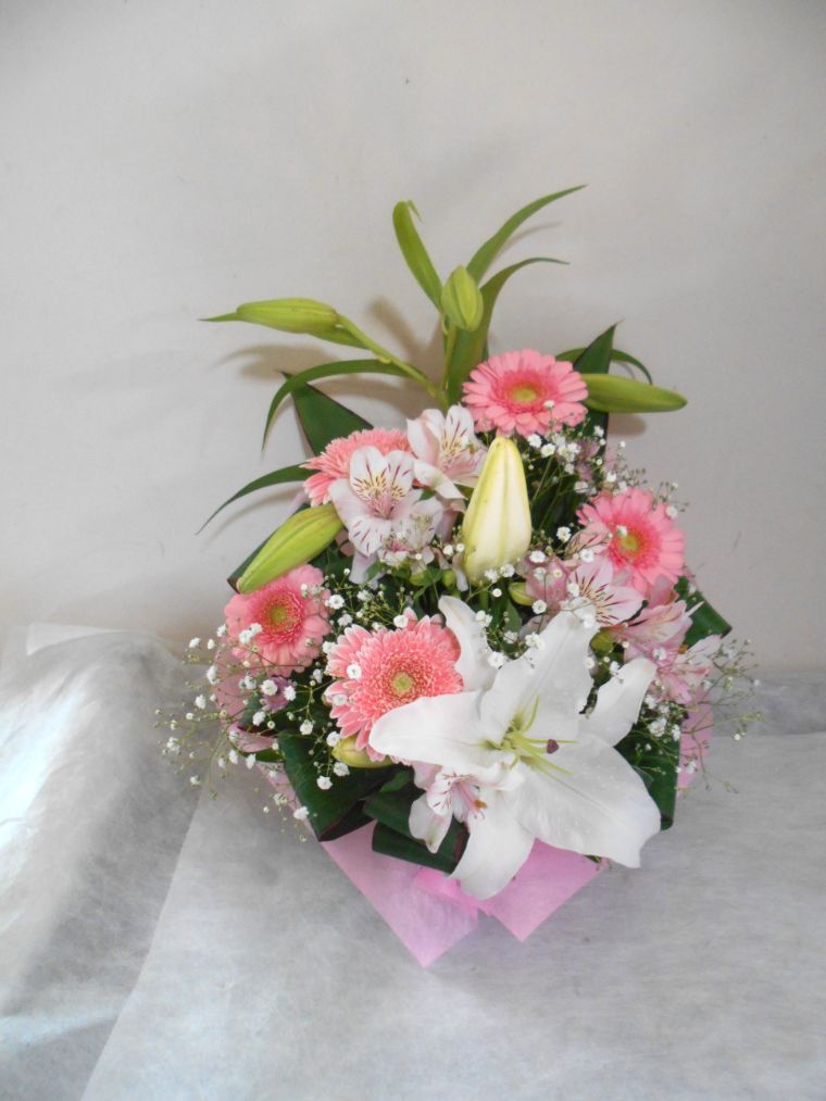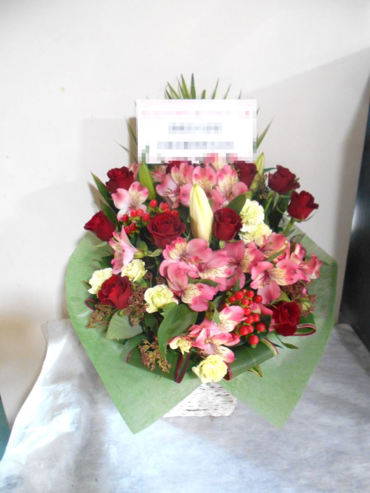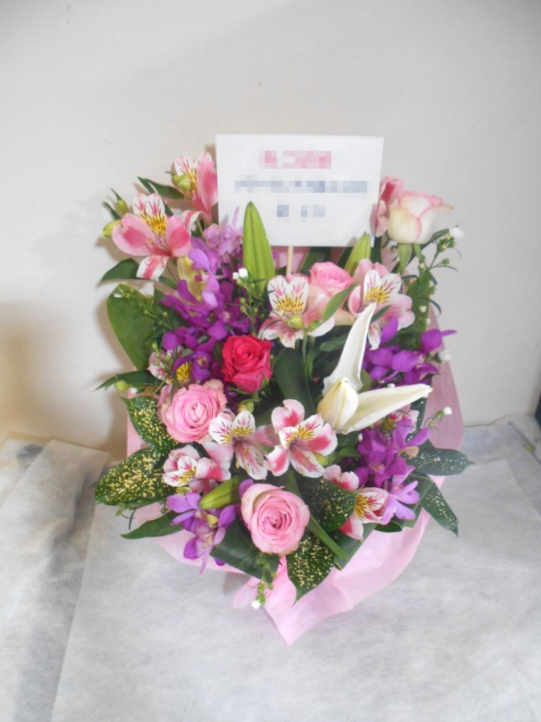 アレンジメントの実際にお届けした写真です。花秘書では発送前に写真をメールで送信致しますので安心して大切な顧客や取引様へのギフトにご利用頂けます。