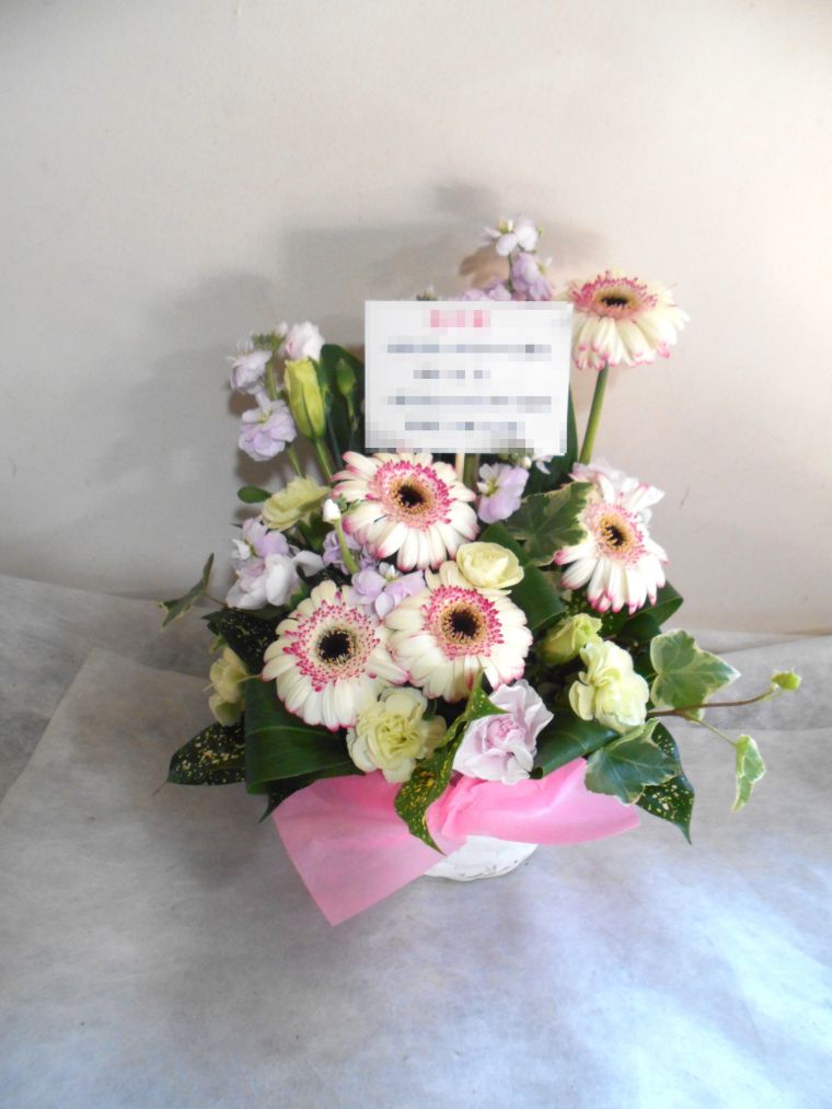 この写真は、実際にお届けさせていただいたアレンジメントです