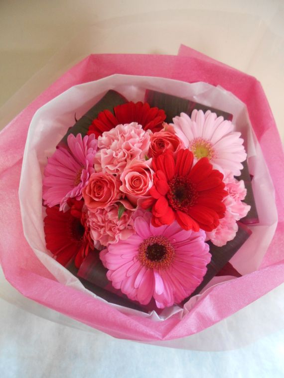 ピンク・レッド・クリームイエロー系のブーケ(花束)