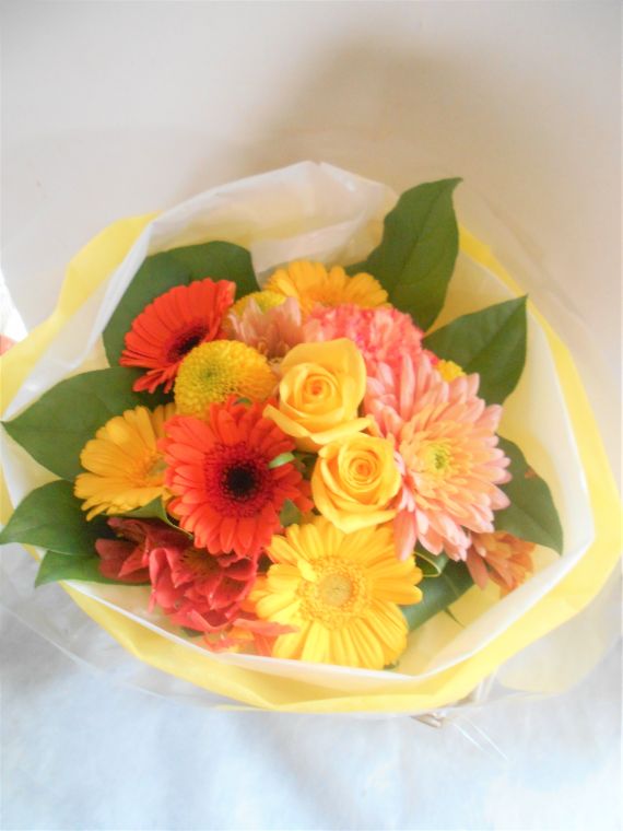 パステルイエローとオレンジ系のブーケ(花束)
