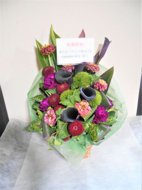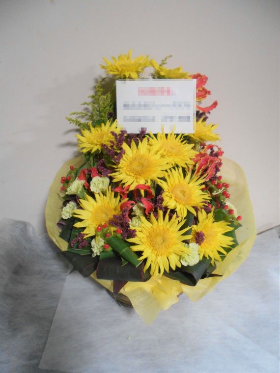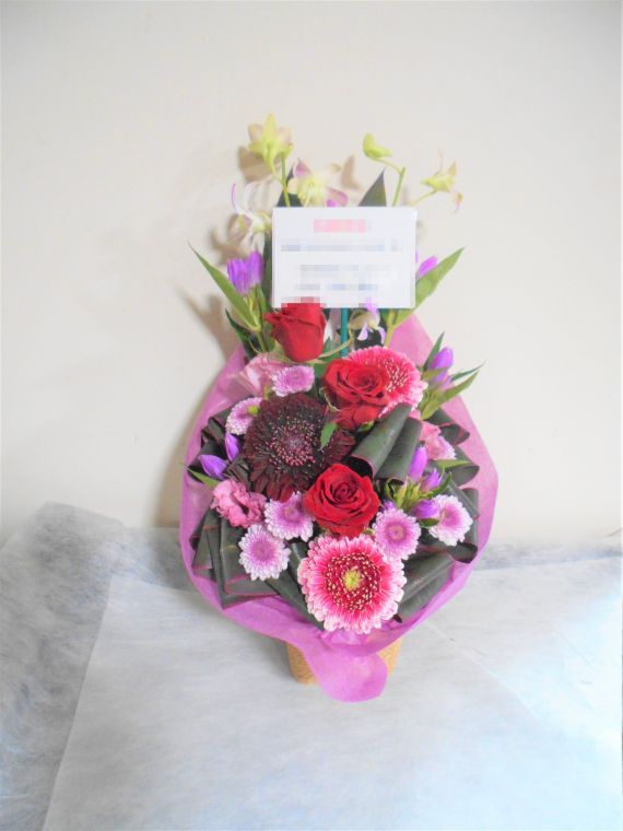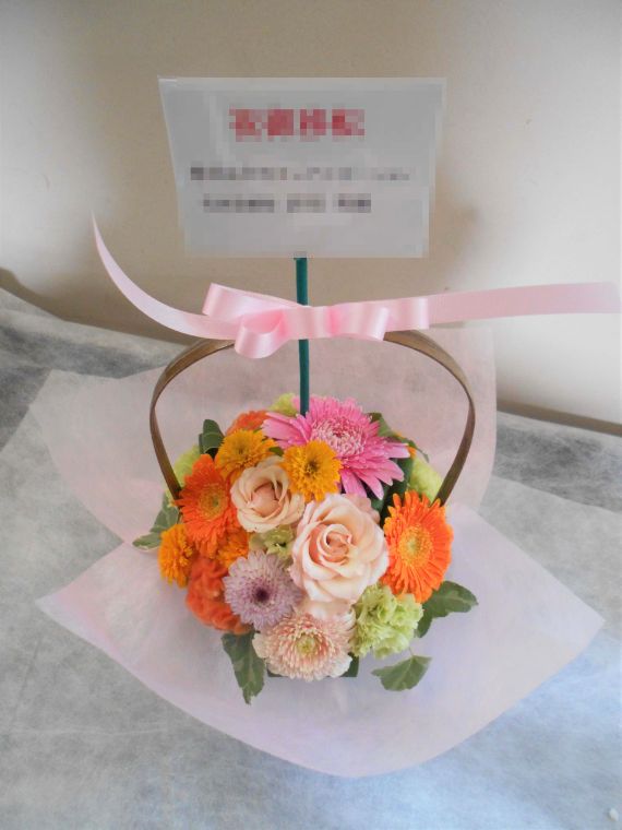 この写真は、実際にお届けさせていただいたアレンジメントです