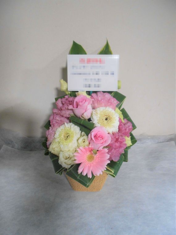 アレンジメントの実際にお届けした写真です。花秘書では発送前に写真をメールで送信致しますので安心して大切な顧客や取引様へのギフトにご利用頂けます。