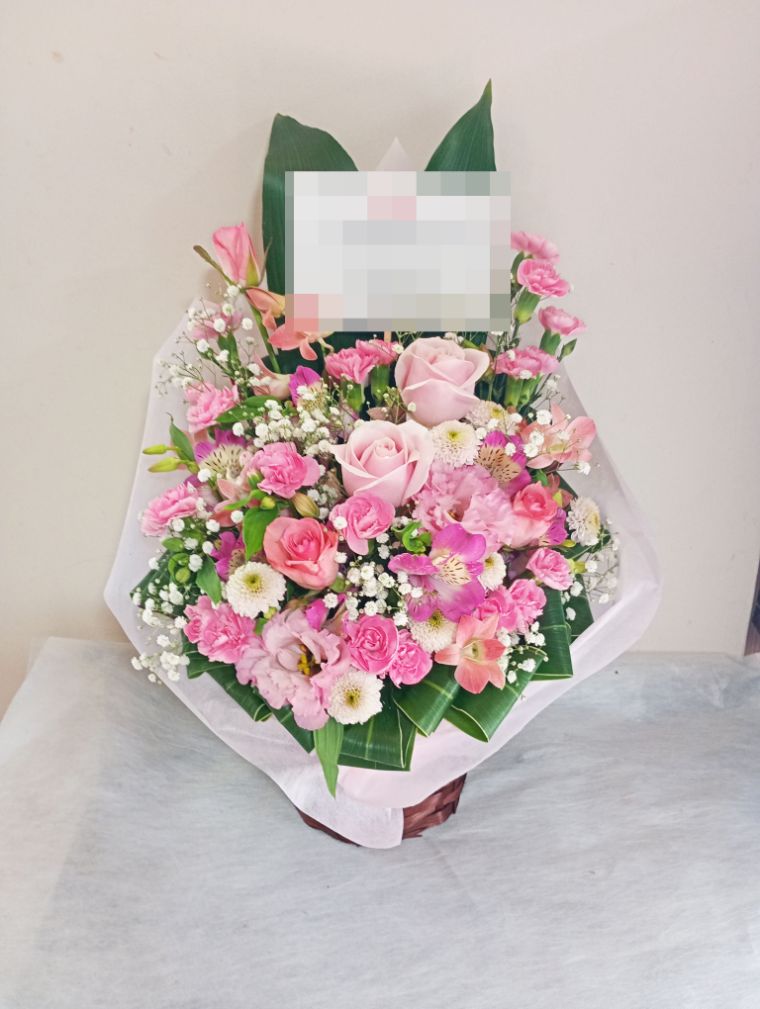 上寿・百寿(100歳)のお祝い桃色のお花メインのアレンジメント10000